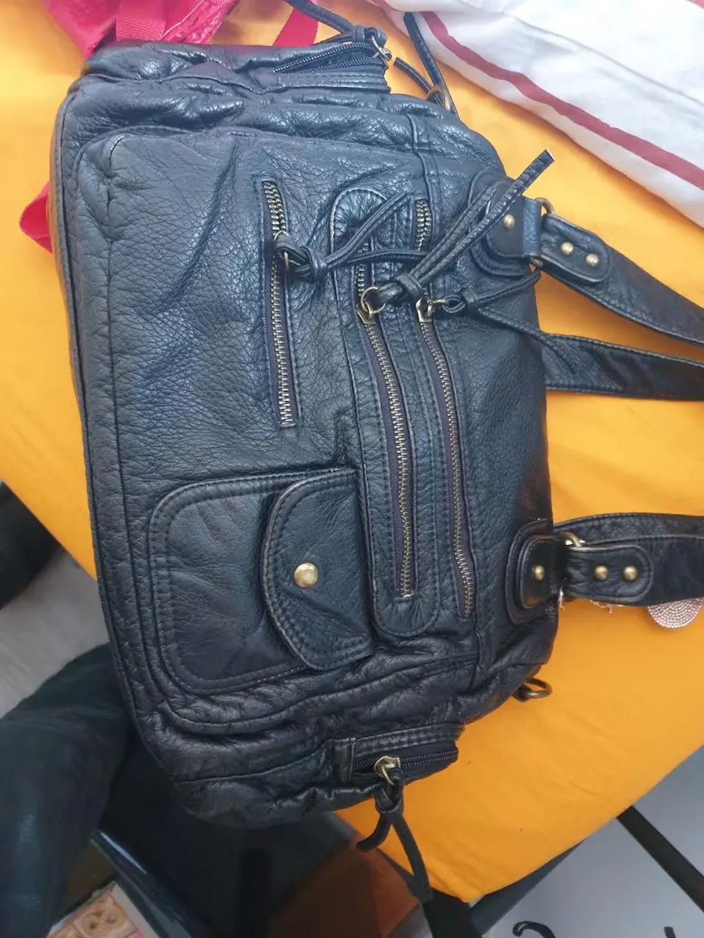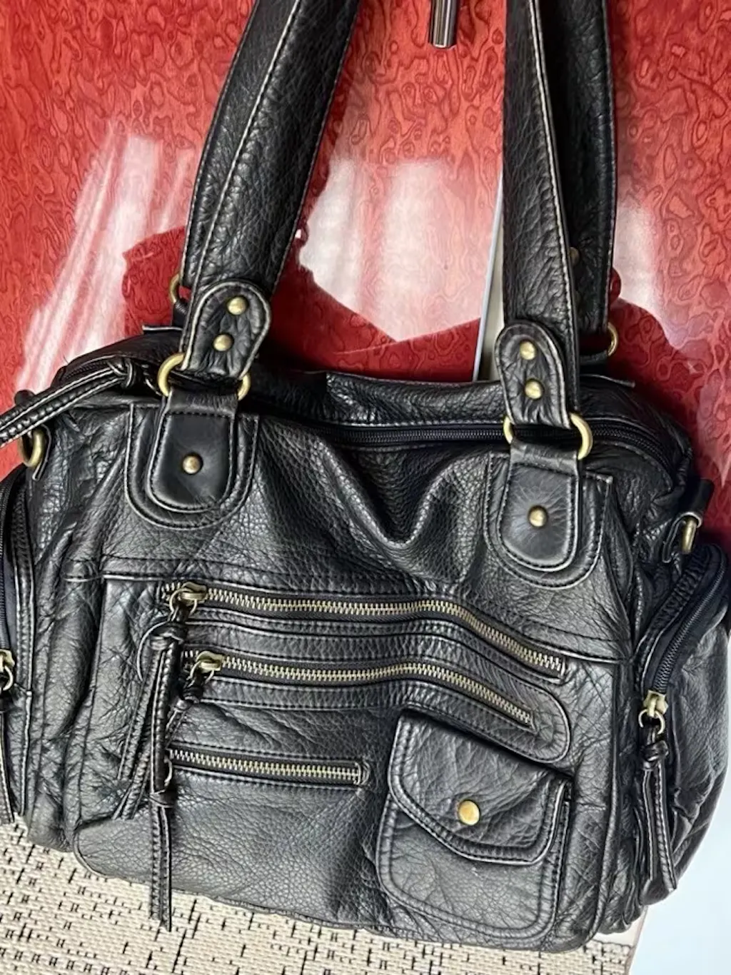 The material has a soft vintage look and the shape sits nicely on the shoulder. I have gotten compliments on it already.